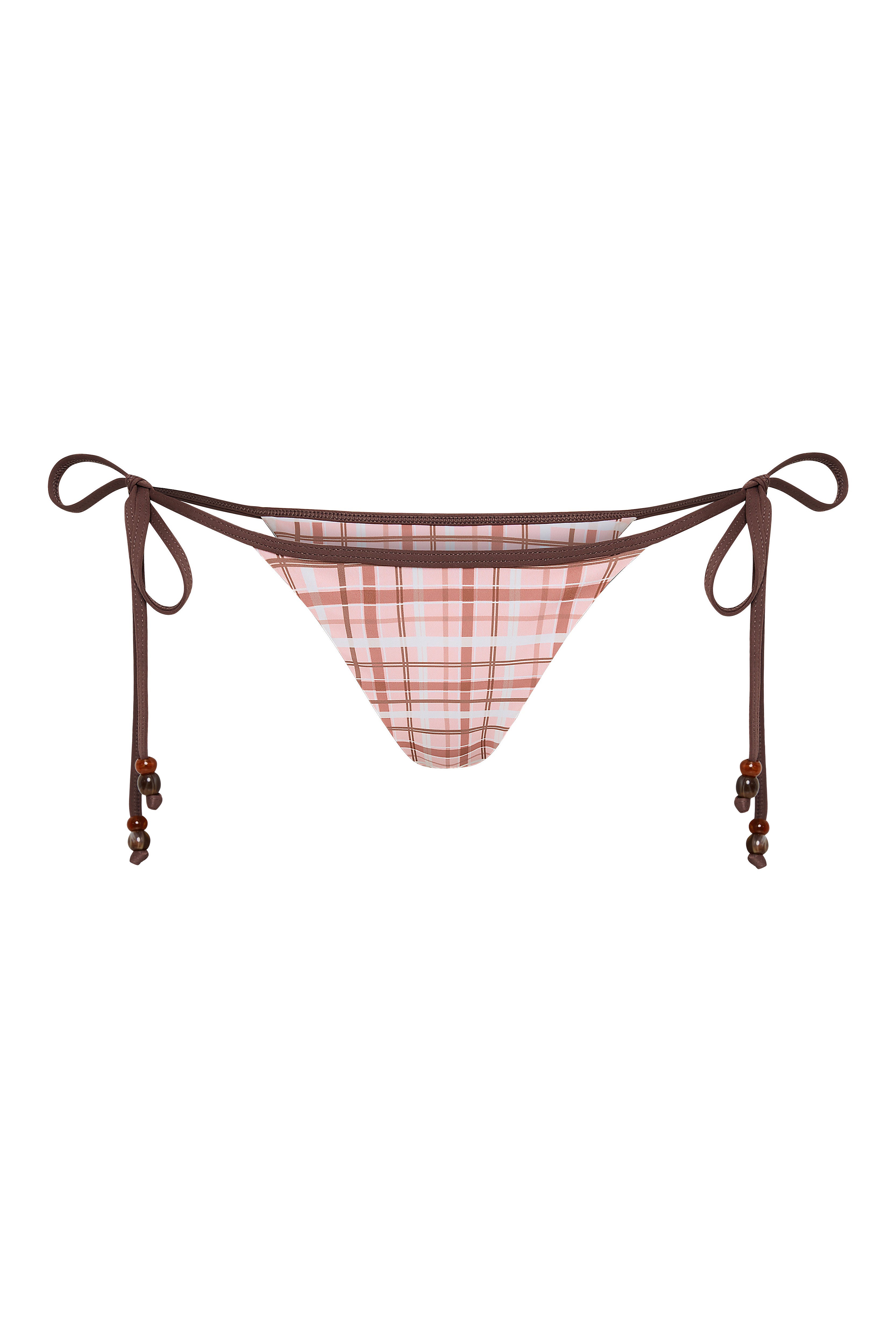 Classic cheeky cut with 2 brown beads at every string