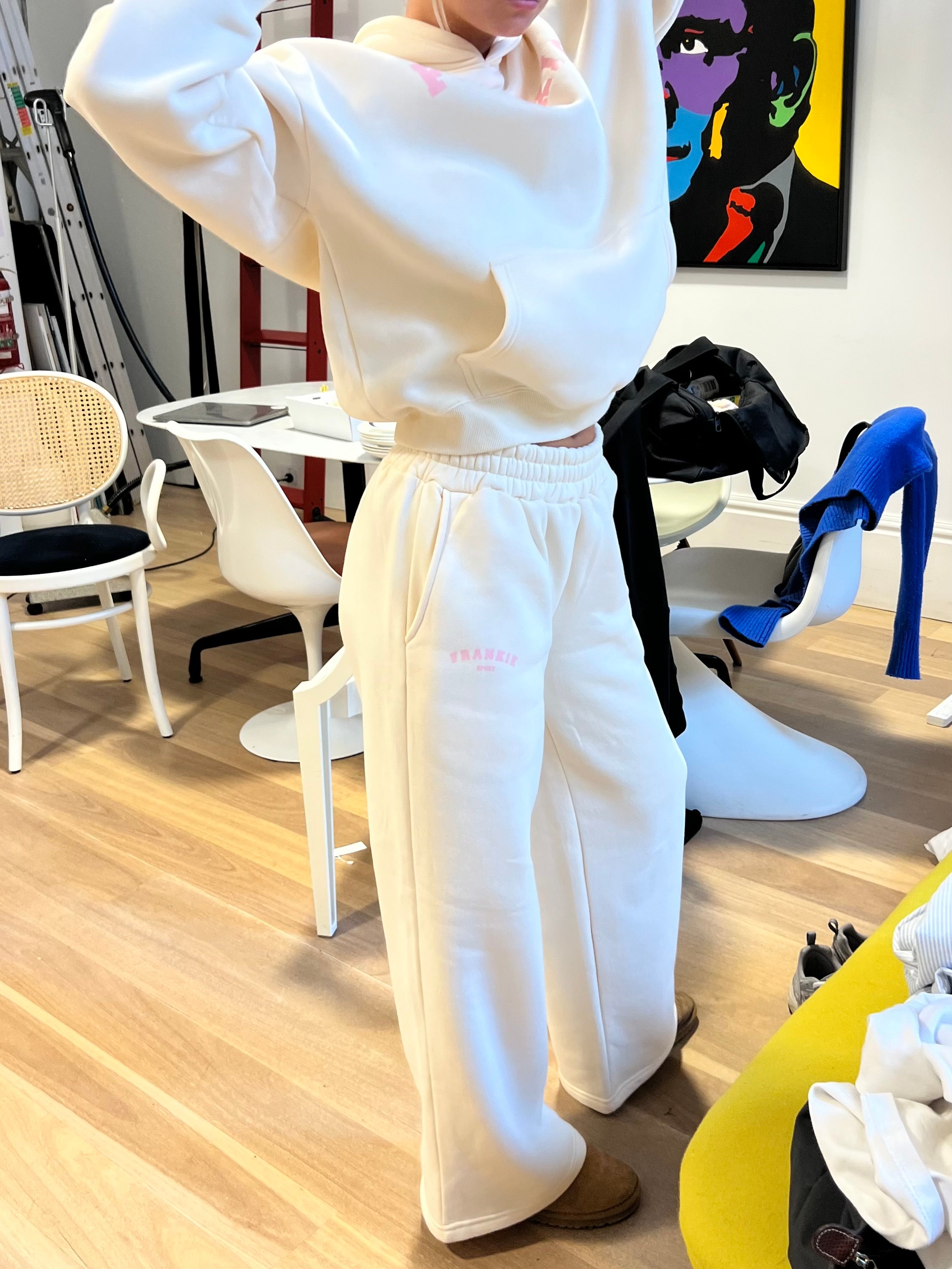 • Pink ‘Frankie Sport’ screen print on right leg